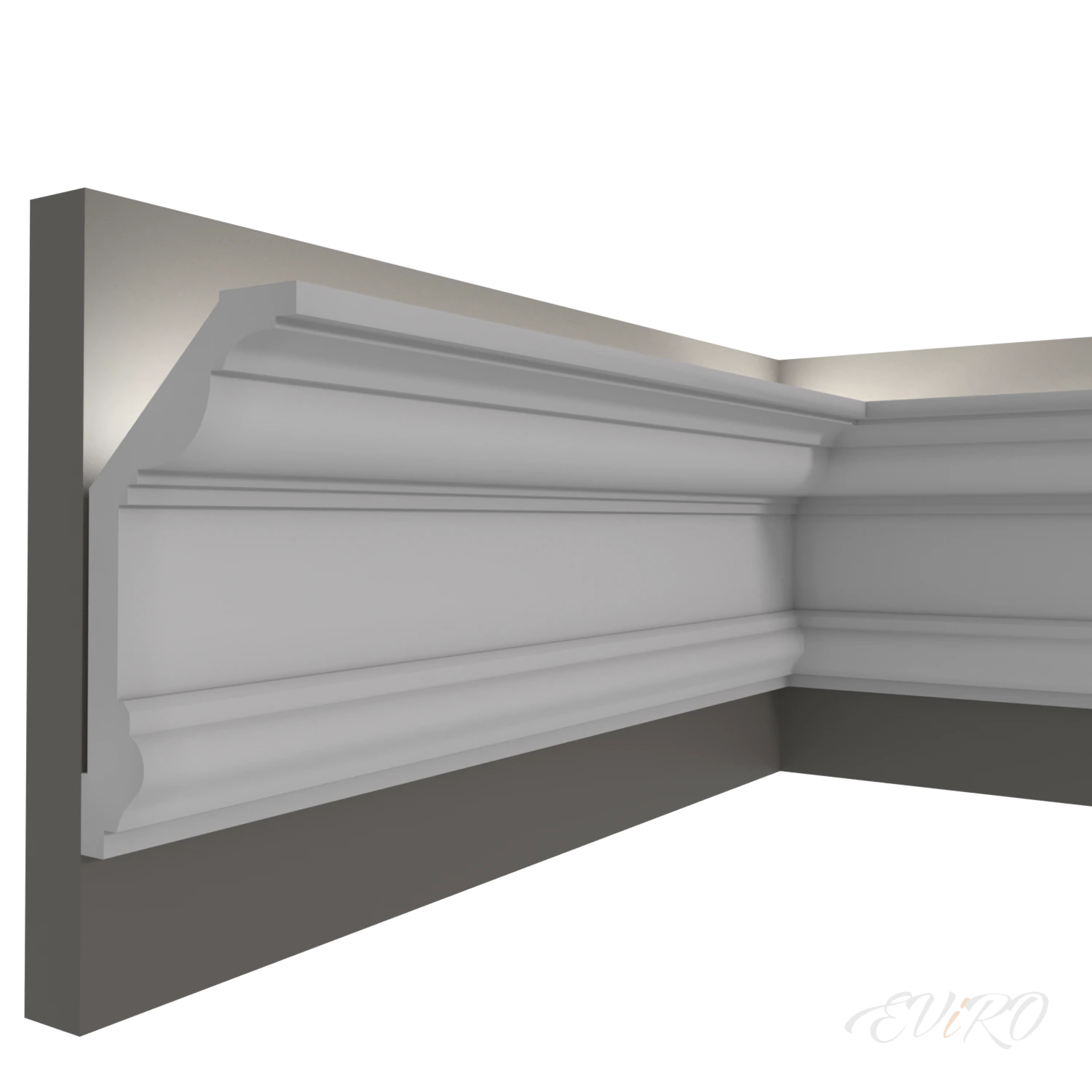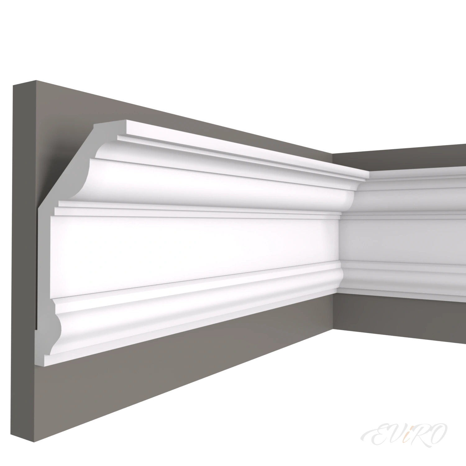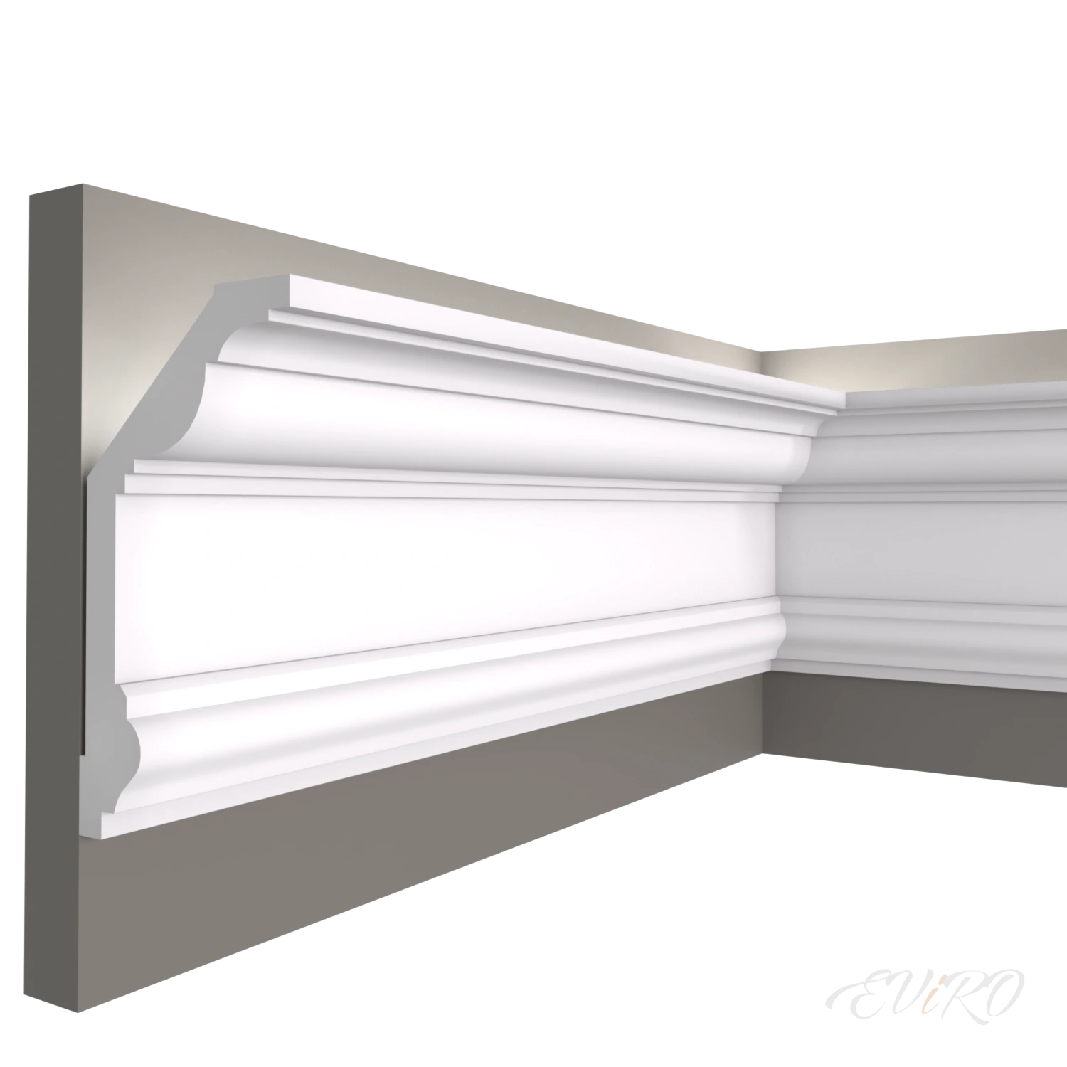 Специалисты компании ЕВиРО с большой ответственностью подошли к создаваемым моделям гипсовых карнизов с орнаментом, каждая модель неповторима и по-своему уникальна. Материал, из которого изготавливаются карнизы фабрики ЕВиРО, скульптурный гипс, армированный стеклофиброволокном, является экологически чистым, не горючим, влагоустойчивым, а так же прочным и долговечным. Карнизы ЕВиРО из скульптурного гипса могут быть окрашены в любой цвет, а так же могут быть отделаны с эффектом серебра, золота, стали, дерева и другого декоративного напыления. Гипсовые карнизы ЕВиРО совмещают в себе красоту и надежность. Применение карнизов ЕВиРО в интерьере обеспечивает определенный шик и уют.