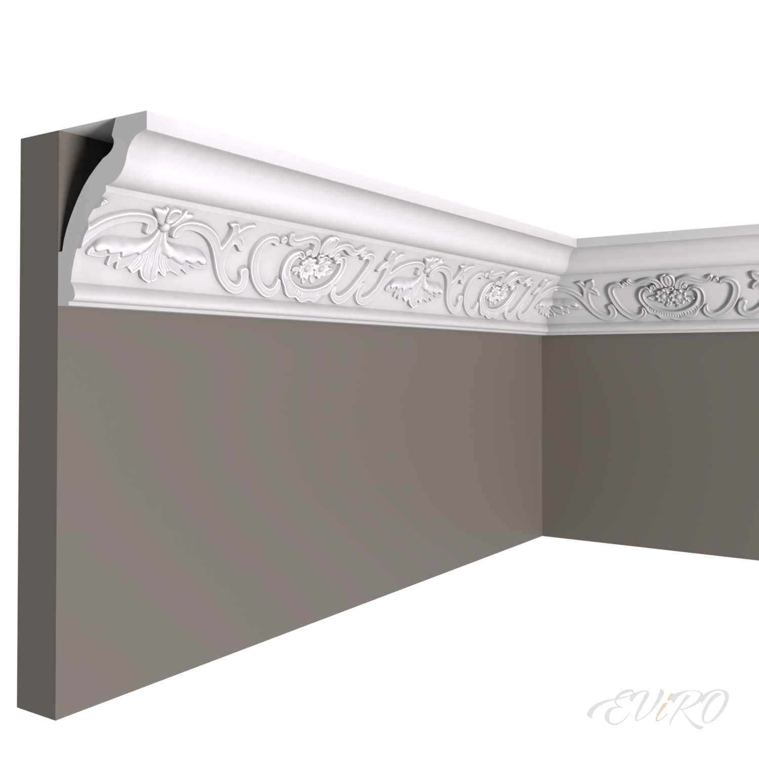 Специалисты компании ЕВиРО с большой ответственностью подошли к создаваемым моделям гипсовых карнизов с орнаментом, каждая модель неповторима и по-своему уникальна. Материал, из которого изготавливаются карнизы фабрики ЕВиРО, скульптурный гипс, армированный стеклофиброволокном, является экологически чистым, не горючим, влагоустойчивым, а так же прочным и долговечным. Карнизы ЕВиРО из скульптурного гипса могут быть окрашены в любой цвет, а так же могут быть отделаны с эффектом серебра, золота, стали, дерева и другого декоративного напыления. Гипсовые карнизы ЕВиРО совмещают в себе красоту и надежность. Применение карнизов ЕВиРО в интерьере обеспечивает определенный шик и уют.